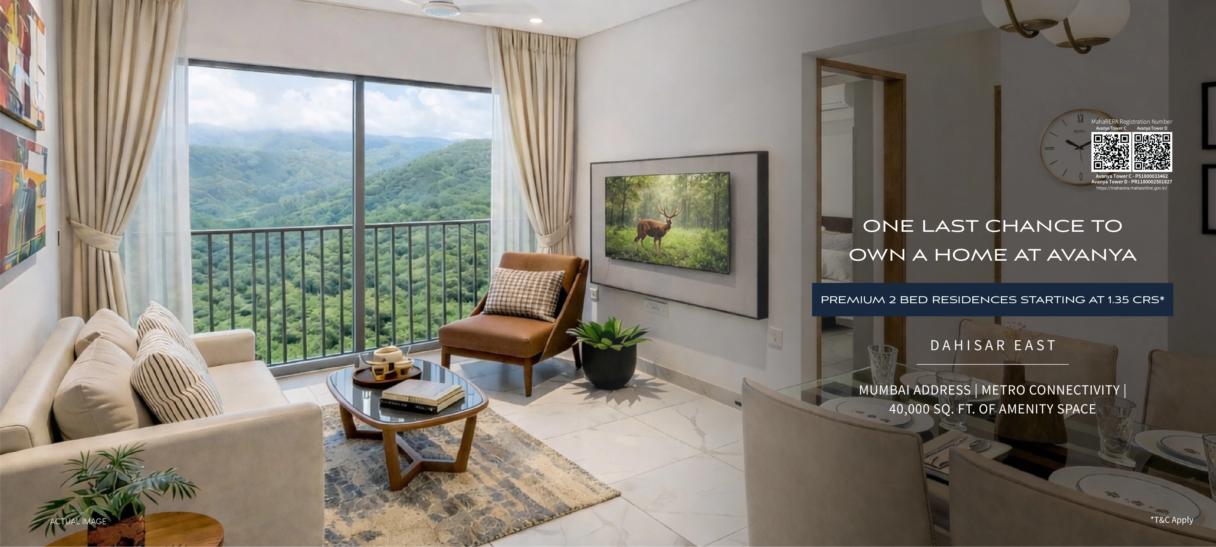 Stay ahead in one of the world's fastest-moving cities. Dahisar, Mumbai's northernmost gateway, seamlessly blends urban convenience with natural serenity. With top-tier hospitals, international schools, entertainment hubs, and shopping centres, everything you need is within reach. Its strategic connectivity - close to key business districts, airports, and the Western Express Highway - makes it the perfect location for you and your loved ones. Nestled near the lush greenery of the Sanjay Gandhi National Park, Dahisar offers a breath of fresh air while keeping you well-connected to the heart of Mumbai.